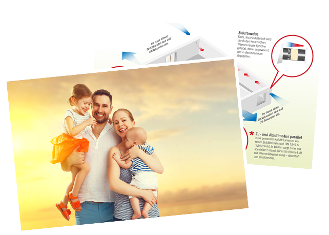 Mit Wärmerückgewinnung. Nach DIN 1946-6 zugelassen für den Betrieb in sogenannten Ablufträumen wie Bädern, Toiletten oder anderen Feuchträumen. Installationsfreundliche Stand-Alone-Lösung – kein paarweiser Einsatz des Lüftungsgerätes erforderlich. Innovatives 2-Kanal-System für konstanten Zu-/ Abluftvolumenstrom in nur einer Wandeinbauhülse. Einfacher Betrieb über Bedienteil EASY-DRIVE oder LUX-DRIVE möglich. Servicefreundliche Wartung der Filter.